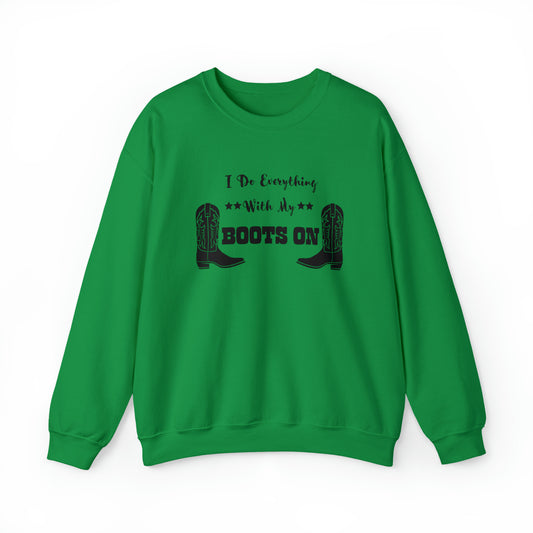 I Do Everything With My Boots On I, Unisex Heavy Blend Crewneck Sweatshirt