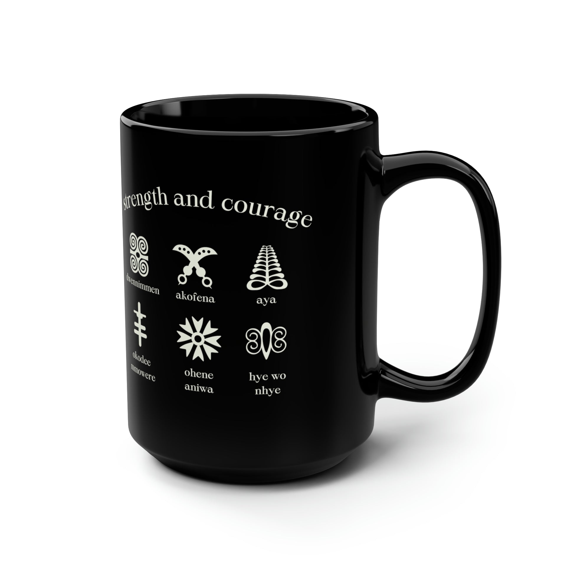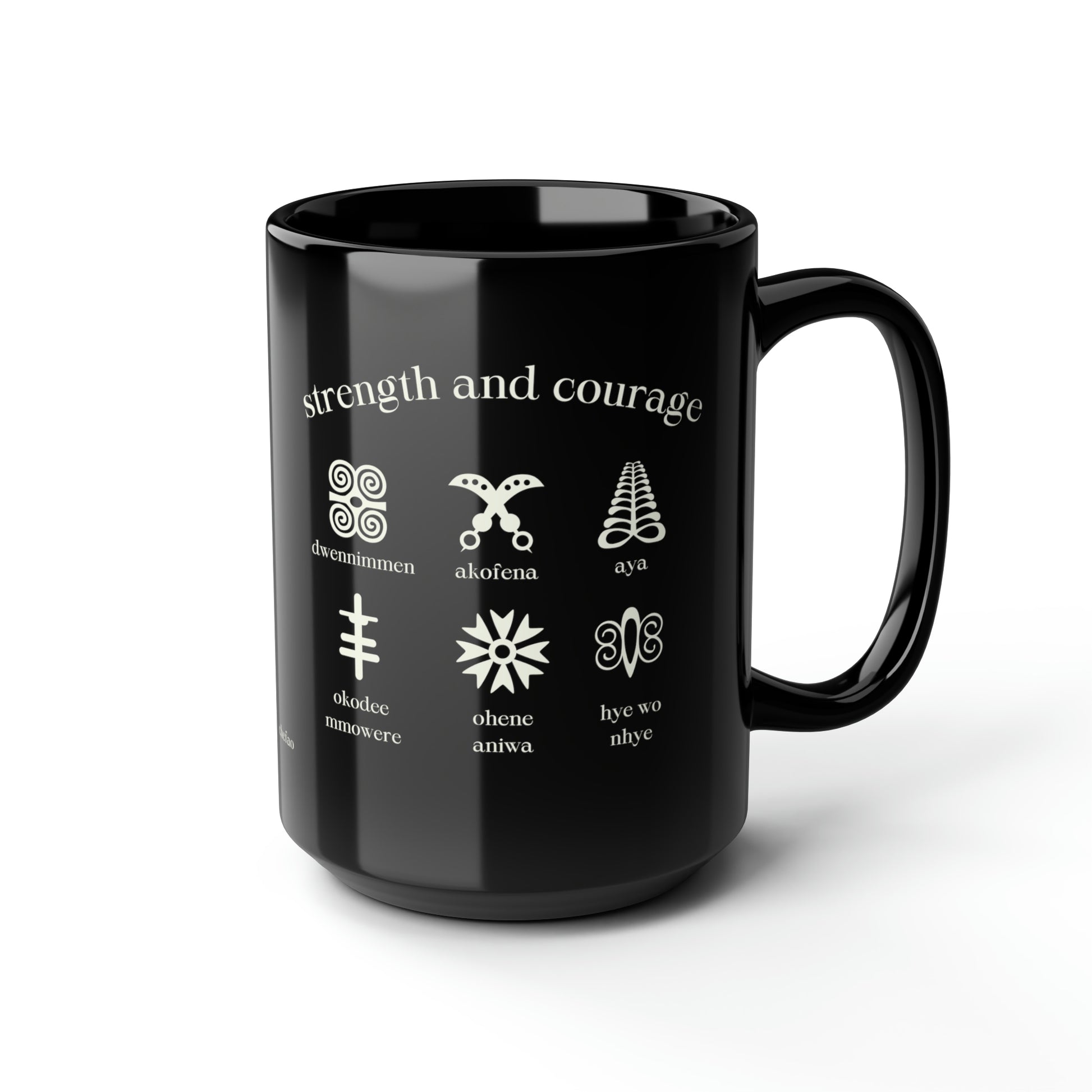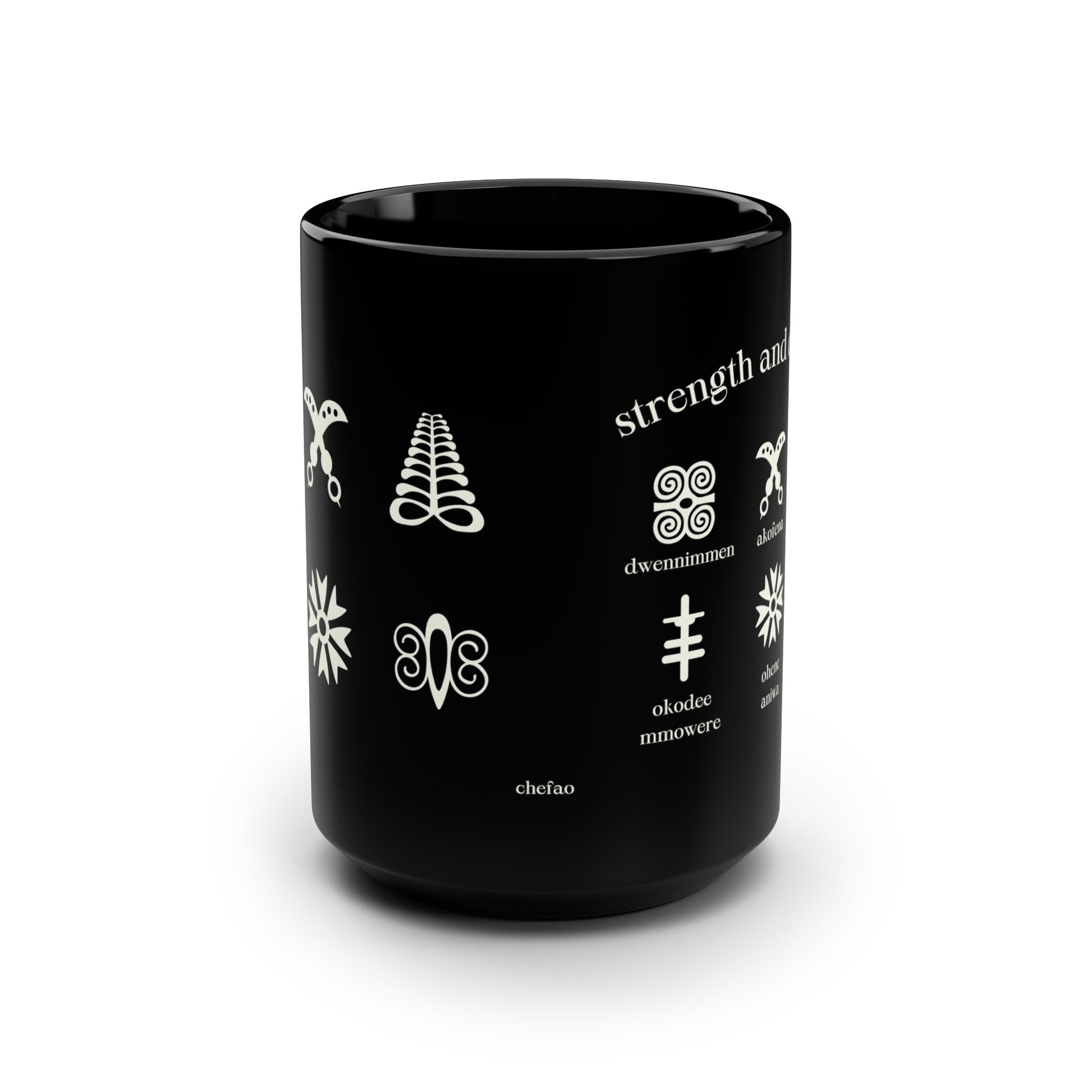 Chefao Adinkra Strength and Courage, Black Mug, 15oz