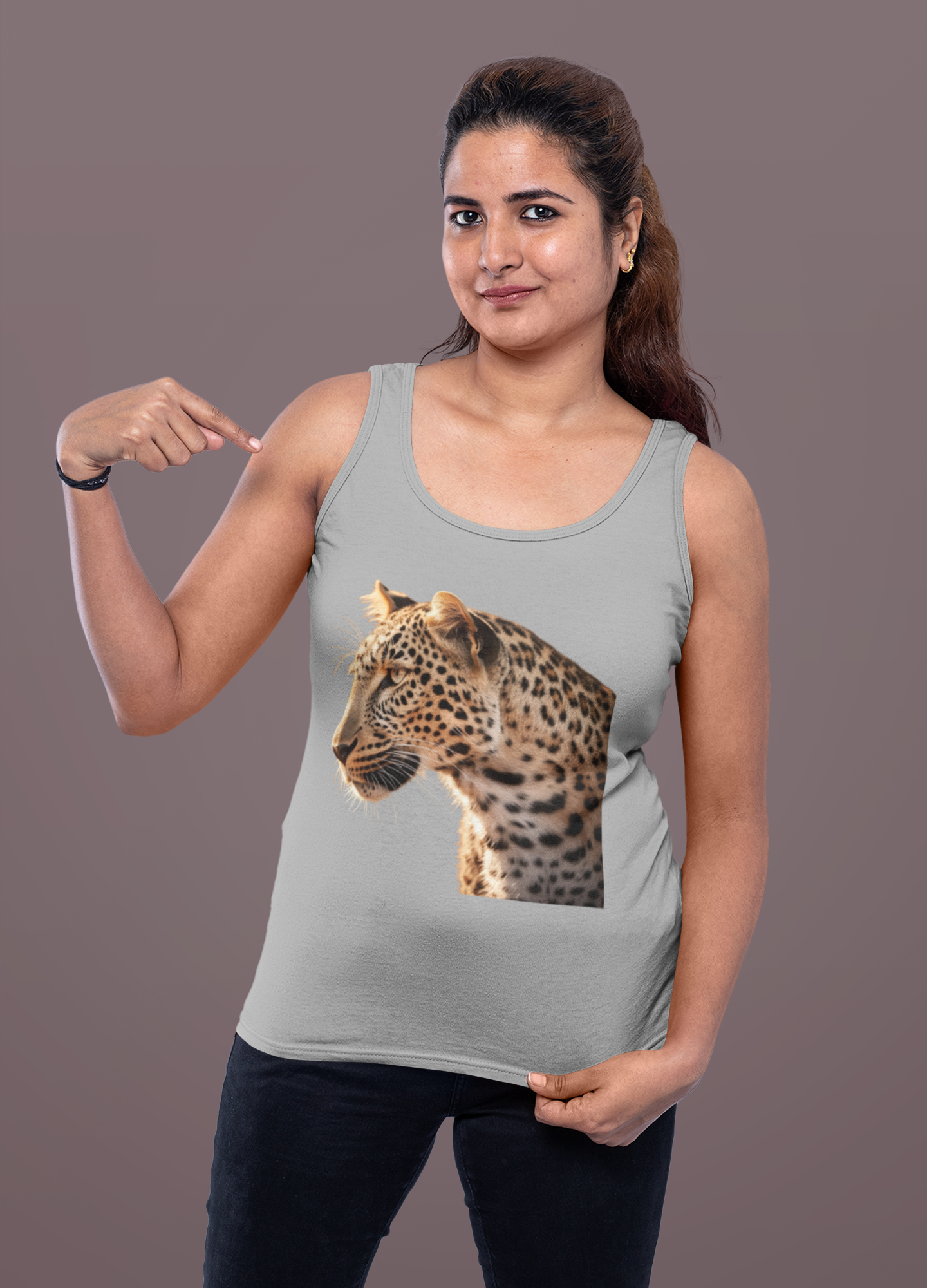 Wear this tank top with your favorite pair of jeans or shorts for a casual, chic look, or dress it up with a skirt and accessories for a more polished ensemble. Whatever the occasion, this tank top is designed to turn heads and inspire awe, making it a must-have addition to any fashion-savvy woman's wardrobe. Embrace the spirit of the wild with this Leopard racerback tank-top and let your style roar with confidence and grace. .: Material: 60% combed, ring-spun cotton, 40% polyester .: Extra light fabric (4 oz/yd² (135 g/m²)) .: Slim fit .: Tear-away label .: Runs smaller than usual